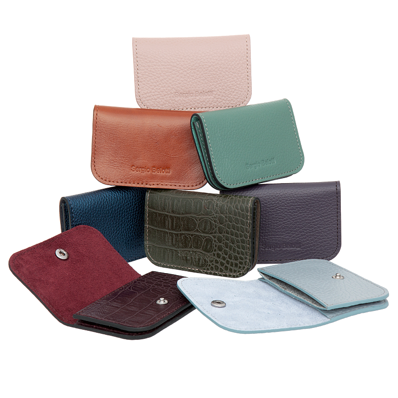 Удобная визитница из натуральной кожи. Внутри два кармана для пластиковых карт. Закрывается широким клапаном на кнопке. Цвета в ассортименте.
