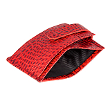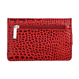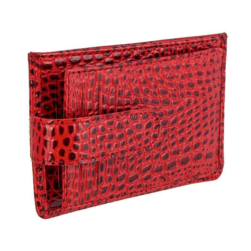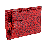 Компактная кредитница из натуральной кожи красного цвета с тиснением под рептилию. Внутри одно отделение для купюр, карман для монет на молнии и девять кармашков для пластиковых карт. Закрывается хлястиком на кнопку. Товар упакован в подарочную коробку от бренда Sergio Belotti. Размеры: 12,5 x 8,5 x 1 см.