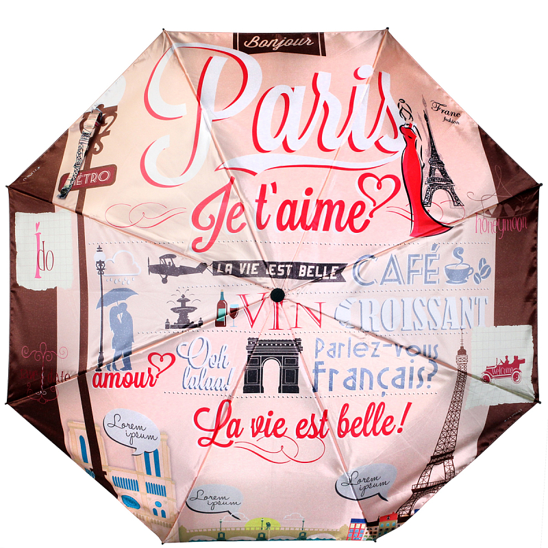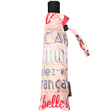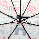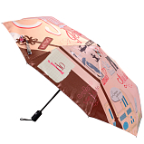 Автомат, три сложения, восемь спиц, диаметр купола 104 см, пластиковая ручка с петлёй на запястье. Вес 360 грамм.