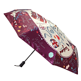 Дизайнерский элегантный женский зонт с принтом. Картина на весь купол. Система «Антиветер». Полный автомат (супер автомат) в 3 сложения. Открывается и закрывается посредством кнопки, фиксируется вручную. Большой купол из качественного сатина с пропиткой от влаги и грязи. Усиленный каркас: алюминий, анодированная сталь, фибергласс. Эргономичная прорезиненная "Soft Touch" ручка с хлястиком. Размеры: 30 x 6 см. Диаметр купола: 116 см; 8 спиц. Вес: 0,450 кг. Чехол в комплекте.