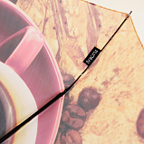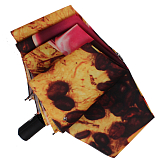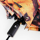 Автомат, три сложения, восемь спиц, диаметр купола 116 см, пластиковая ручка с петлёй на запястье. Вес 460 грамм.