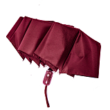Классический однотонный зонт автомат, 3 сложения. Можно использовать как женский, так и мужской аксессуар (унисекс). Система "Антиветер". Купол из качественного эпонжа (100% полиэстер) с пропиткой от влаги и грязи. Усиленный каркас: алюминий, анодированная сталь, фибергласс. Эргономичная прямая ручка с хлястиком, 8 спиц, размер купола 105 см. Вес 0,345 г.