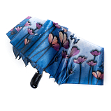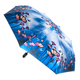 Женский зонт автомат, 3 сложения. Система "Антиветер". Большой купол из качественного сатина с пропиткой от влаги и грязи. Усиленный каркас: алюминий, анодированная сталь, фибергласс. Эргономичная прямая ручка с хлястиком, 8 спиц, размер купола 105 см. Вес 0,345 г.