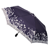 Элегантный женский зонт с принтом. Система "Антиветер". Полный автомат в 3 сложения. Открывается и закрывается посредством кнопки, закрывается вручную. Большой купол из качественного эпонжа (100% полиэстер) с пропиткой от влаги и грязи. Усиленный каркас: алюминий, анодированная сталь, фибергласс. Эргономичная пластиковая "Soft Touch" ручка с хлястиком. Размеры: 28 x 5 см. Диаметр купола: 110 см; 8 спиц. Вес: 0,450 кг. Чехол в комплекте.