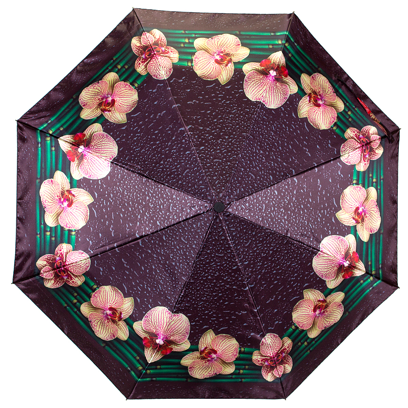 Трость-автомат, три сложения, пластиковая ручка с петлёй на запястье, восемь спиц, диаметр купола 104 см, вес 460 грамм.