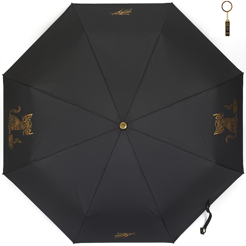 Дизайнерский женский зонт от бренда Flioraj®. Система «Антиветер». Полный автомат (супер автомат) в 3 сложения. Открывается и закрывается посредством кнопки, фиксируется вручную. Большой купол из качественного эпонжа с пропиткой от влаги и грязи. Ткань красится ручным способом. Усиленный каркас: алюминий, анодированная сталь, фибергласс. Эргономичная пластиковая "Soft Touch" ручка с хлястиком. Фурнитура с винтажной позолотой, которой инкрустированы элементы зонта. В комплекте дизайнерский чехол и брелок в виде золотого слитка.