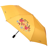 Автомат, три сложения. Каркас из анодированной стали, бронзовая фурнитура, окрашивание ткани производится вручную, купол - 116 см. Загадочные птички - невелички на фоне нежных полевых цветов. И больше ничего лишнего. Винтажная позолота, которой инкрустированы элементы зонта, вносит в дизайн дополнительный шик. К каждому зонту в подарок изящный брелок в виде золотого слитка.