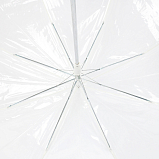Необычный белый прозрачный женский зонт-трость полуавтомат от бренда «Zemsa». Купол зонта прозрачный. Инновационные, экологичные, гипоаллергенные материалы без запаха. Купол зонта не требует дополнительной обработки. Открывается через кнопку, закрывается в ручную. Ручка крюк из пластика. Красивое белое обрамление купола зонта. Есть чехол. Размер купола 116 см.