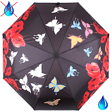 Автомат, три сложения, оснащён системой "антиветер", каркас из анодированной стали, прорезиненная ручка, проявляющийся рисунок, купол 116 см. Необычный женский зонт расцветает яркими красками под каплями дождя. И вот уже у вас над головой закружил хоровод бабочек. Новый эффект проявления рисунка на разноцветных зонтах. Нежные женственные цветы и легкие бабочки придадут легкость вашему образу и весеннее настроение. А качественные материалы купола и каркаса обеспечат надежную защиту. Когда разноцветные элементы вновь становятся белыми, это означает, что зонт полностью высох, и его можно складывать. Уникальный каркас из анодированной стали, спицы из фибергласса помогут выдержать натиск ветра. Улучшенный механизм зонта, максимально комфортная ручка держателя, увеличенный на 4,5 см стержень, тефлоновая пропитка материала купола.