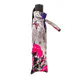 Элегантный женский зонт, каркас из анодированной стали, спицы из фибергласса, тефлоновая пропитка материала купола, автомат три сложения, ручка пластик с петлей на запястье, 8 спиц, радиус купола 58 см, вес 380 г