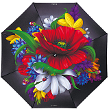 Элегантный женский зонт, каркас из анодированной стали, спицы из фибергласса, тефлоновая пропитка материала купола, автомат три сложения, ручка пластик с петлей на запястье, 8 спиц, радиус купола 58 см, вес 380 г