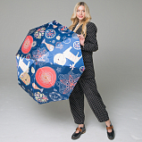 Три сложения с технологией «супер-автомат», восемь спиц, диаметр купола 104 см, прорезиненная ручка с петлёй на запястье. Вес 380 грамм.