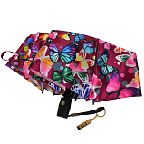 Автомат, три сложения. Каркас из анодированной стали, бронзовая фурнитура, окрашивание ткани производится вручную, купол - 116 см. Яркие порхающие бабочки в разноцветном конфетти создадут атмосферу праздника даже в унылую погоду! Винтажная позолота, которой инкрустированы элементы зонта, вносит в дизайн дополнительный шик. К каждому зонту в подарок изящный брелок в виде золотого слитка.