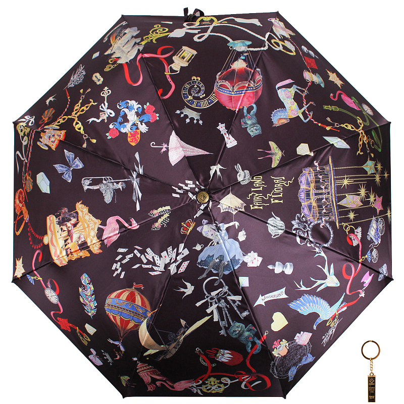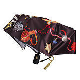 Автомат, три сложения. Каркас из анодированной стали, бронзовая фурнитура, окрашивание ткани производится вручную, купол - 116 см. Загадочные птички - невелички на фоне нежных полевых цветов. И больше ничего лишнего. Винтажная позолота, которой инкрустированы элементы зонта, вносит в дизайн дополнительный шик. К каждому зонту в подарок изящный брелок в виде золотого слитка.