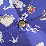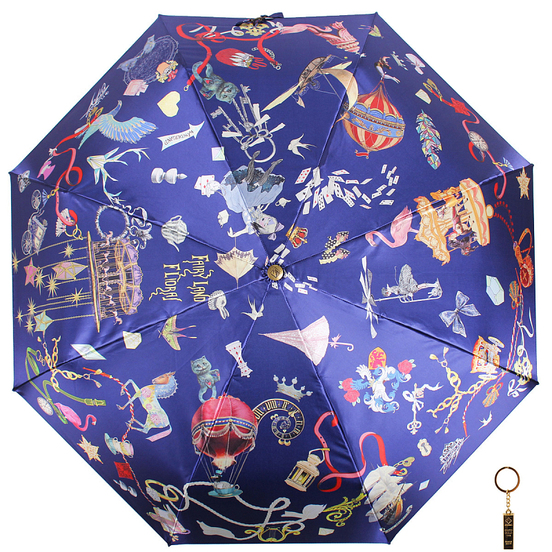 Автомат, три сложения. Каркас из анодированной стали, бронзовая фурнитура, окрашивание ткани производится вручную, купол - 116 см. Загадочные птички - невелички на фоне нежных полевых цветов. И больше ничего лишнего. Винтажная позолота, которой инкрустированы элементы зонта, вносит в дизайн дополнительный шик. К каждому зонту в подарок изящный брелок в виде золотого слитка.