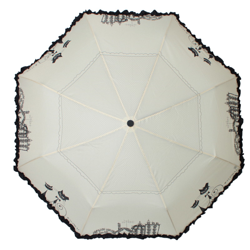 Супер-автомат, три сложения, каркас из анодированной стали, восемь спиц, диаметр купола 104 см, прорезиненная ручка с петлёй на запястье, вес 380 грамм.