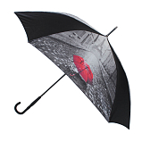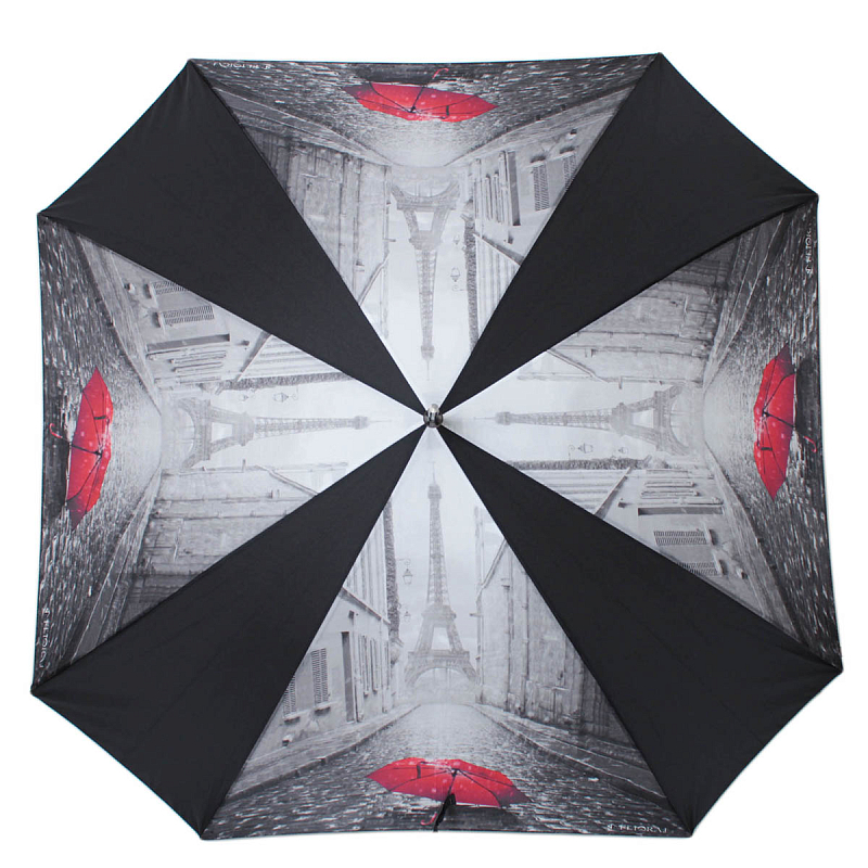 Зонт-трость, полуавтомат, диаметр купола 120 см, восемь спиц, прорезиненная ручка в форме крюка, вес 400 грамм.