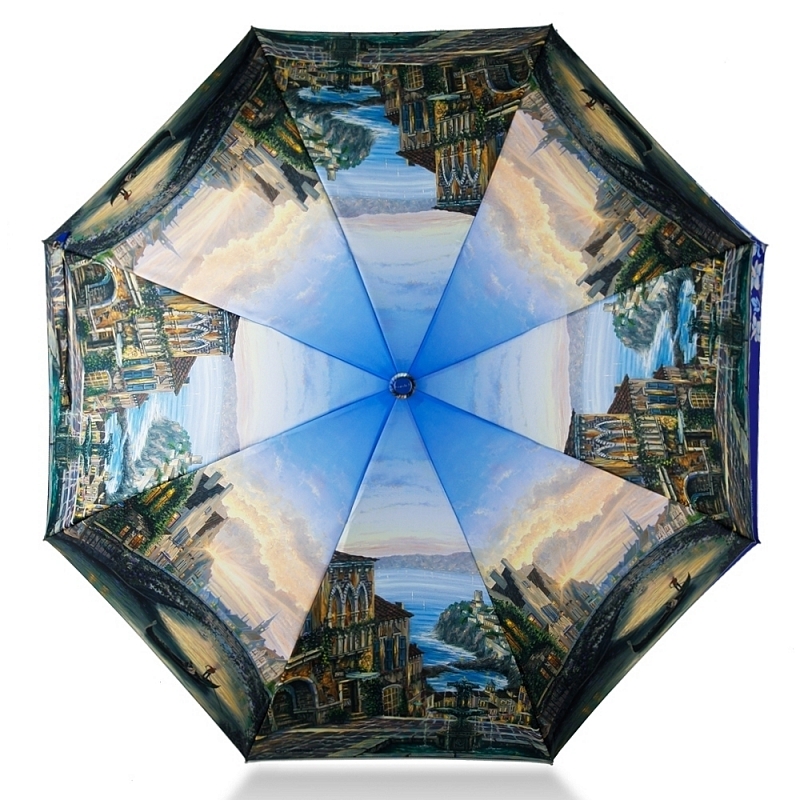 Зонт автомат, три сложения, пластиковая ручка с петлёй на запястье, восемь спиц 58 см. Диаметр купола 116 см.
