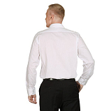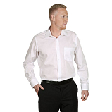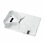 Мужская сорочка классического силуэта с длинным рукавом из смесевой однотонной ткани, со специальной обработкой для лёгкой глажки, имеет одиночный карман на левой стороне, манжеты сложной формы с двойными пуговицами, воротник Kent (классический, под костюм)